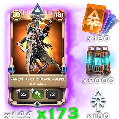 144x Zancathryx the Black Scalpel – a powerful new epic card that will enhance your deck + 29 extra copies – Webstore exclusive!